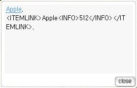 | mes("Bring me an <ITEM>Apple<INFO>512</INFO></ITEM>."); |