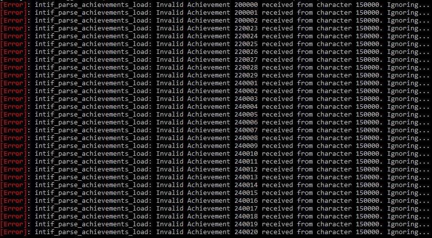 look like you have already assigned achievements in sql db. but hercules not read achievements from configuration files. from here many errors in console. |