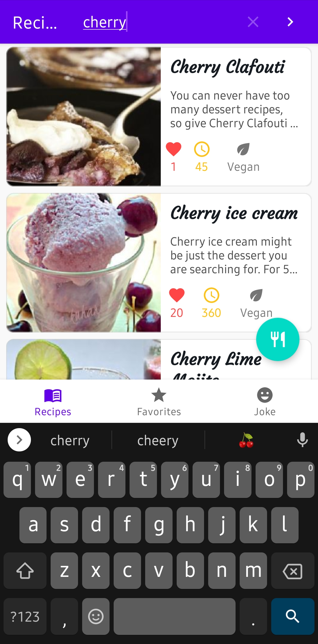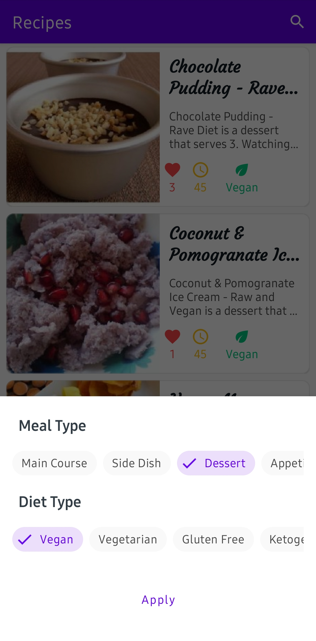 HomeScreen | Filters | Favorite Recipes |