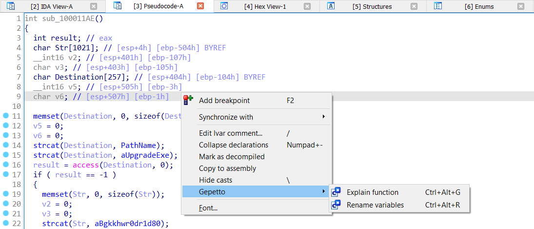 hcli plugin install gepettoThis will automatically install the plugin to your IDA user directory.