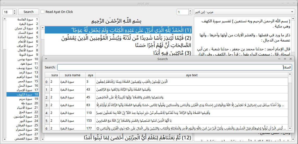 ayat_py written in python using qt5 (PySide2). The data used here extracted from Ayat Software
