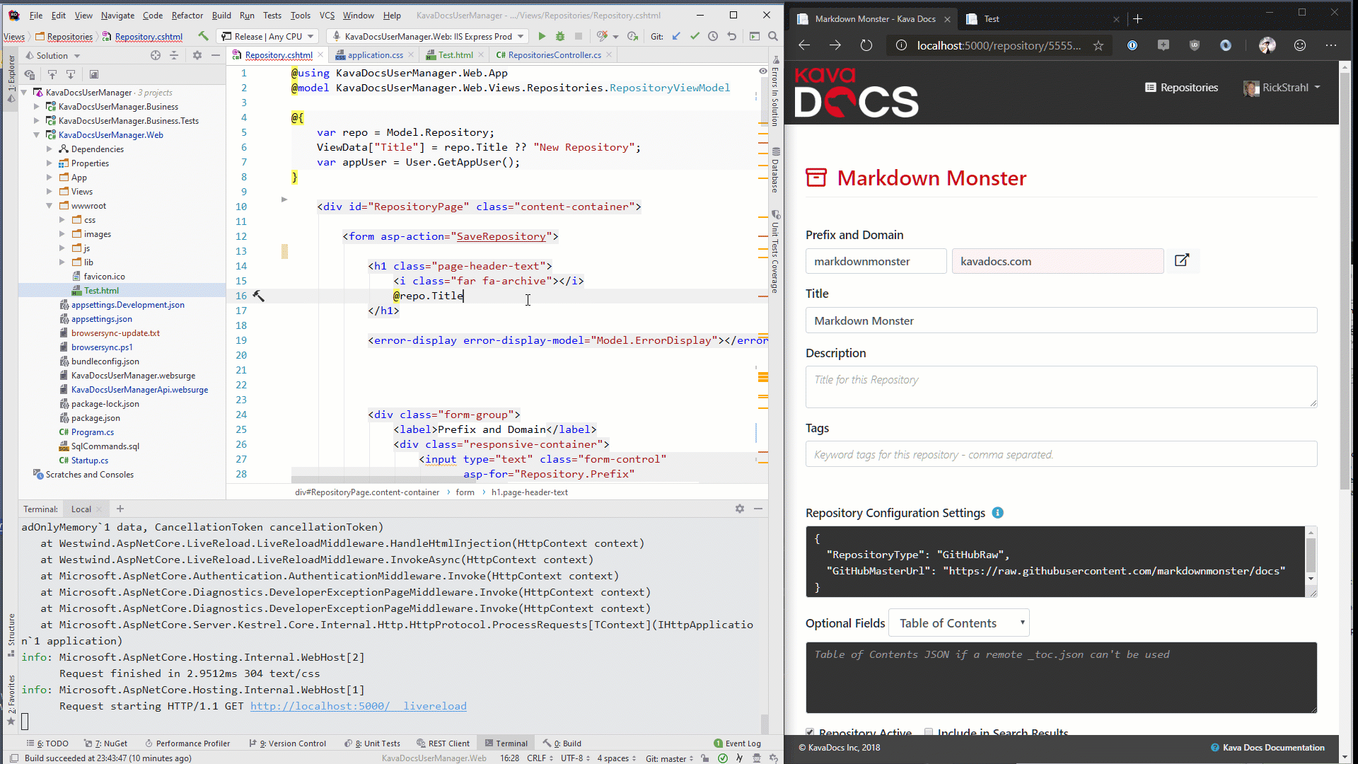 So to check out this functionality you can run the simple stock ASP.NET Core sample project. Let's demonstrate the three common live reload scenarios: