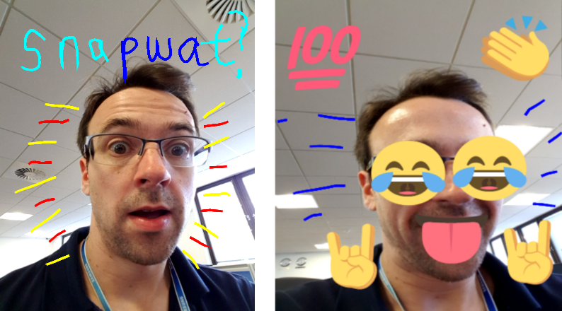 snapwat is a demo to showcase Progressive Web App capabilities. The app lets you doodle and add emojis on top of photos or your live camera feed, then save and/or share your creation!