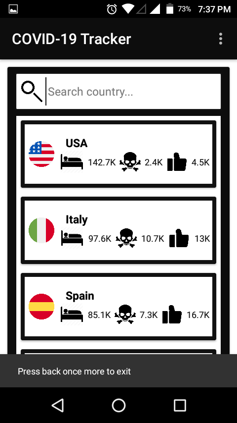 An open-source android app project that keeps track of the countries that are affected by the Corona Virus Disease 2019.
