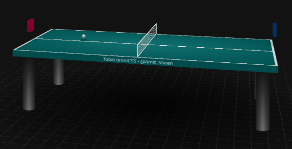 与上述效果类似,一个旋转的使用 CSS 构建的完整 3D 场景,实现了一个乒乓球动画: