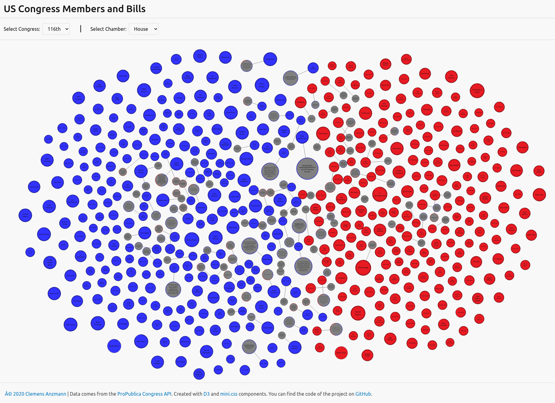 This project is a small web application to access members of US Congress and their latest bills using the ProPublica Congress API. It was created as part of a coding excersie for a past job application.