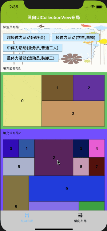 - ZLCollectionViewHorzontalLayout ==== 横向布局(暂时先做了标签页布局和瀑布流,其余的后续增加)
