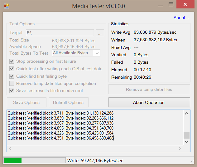 MediaTester can test any media (SD, microSD, thumb, etc) and verify it stores the expected number of bytes. The testing method is similar to h2testw but MediaTester can detect fake or defective media much faster by performing quick reads as data is written. If you buy any storage media, you should use MediaTester to verify it or risk losing your data.
