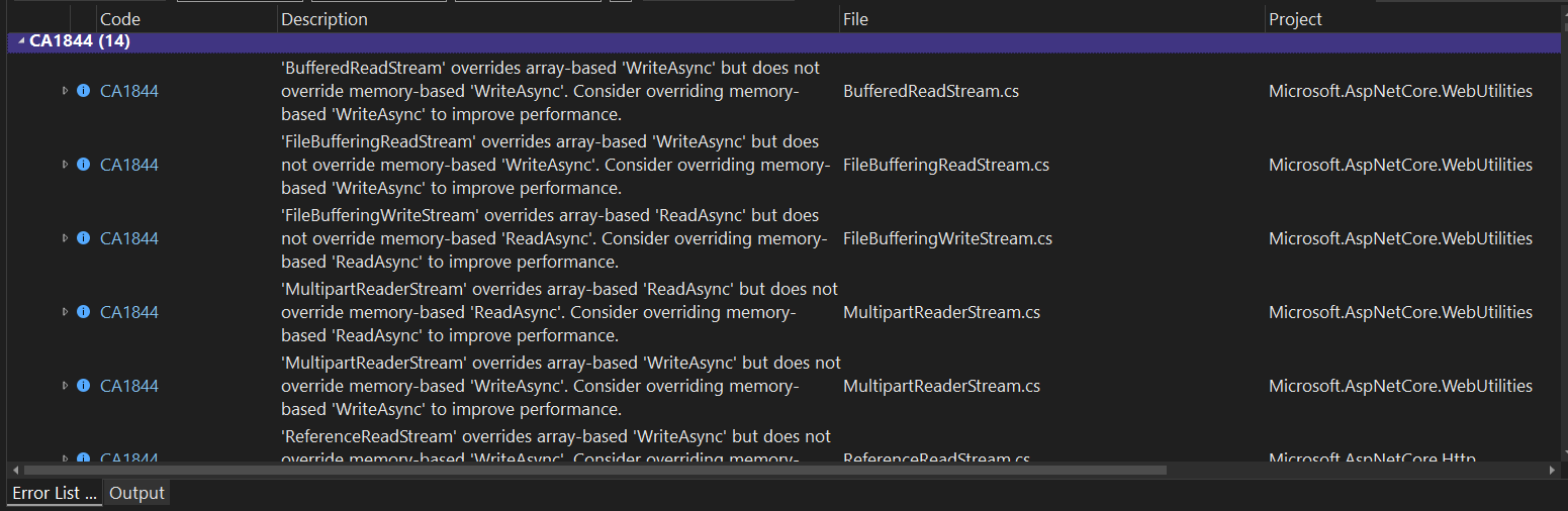 While working on the codebase, Visual Studio threw some warnings about stream performance, which says use memory-based stream instead of an array-based stream.