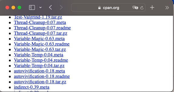 ERROR: Build of /home/easybuild/.local/easybuild/software/EasyBuild/4.6.1/easybuild/easyconfigs/p/Perl/Perl-5.34.1-GCCcore-11.3.0.eb failed (err: "build failed (first 300 chars): Couldn't find file Variable-Magic-0.62.tar.gz anywhere, and downloading it didn't work either... Paths attempted (in order): /home/easybuild/.local/easybuild/software/EasyBuild/4.6.1/easybuild/easyconfigs/p/Perl/p/Perl/extensions/Variable-Magic-0.62.tar.gz, /home/easybuild/.local/easybuild/software/")A screenshot of the page at the following url: https://www.cpan.org/authors/id/V/VP/VPIT/
