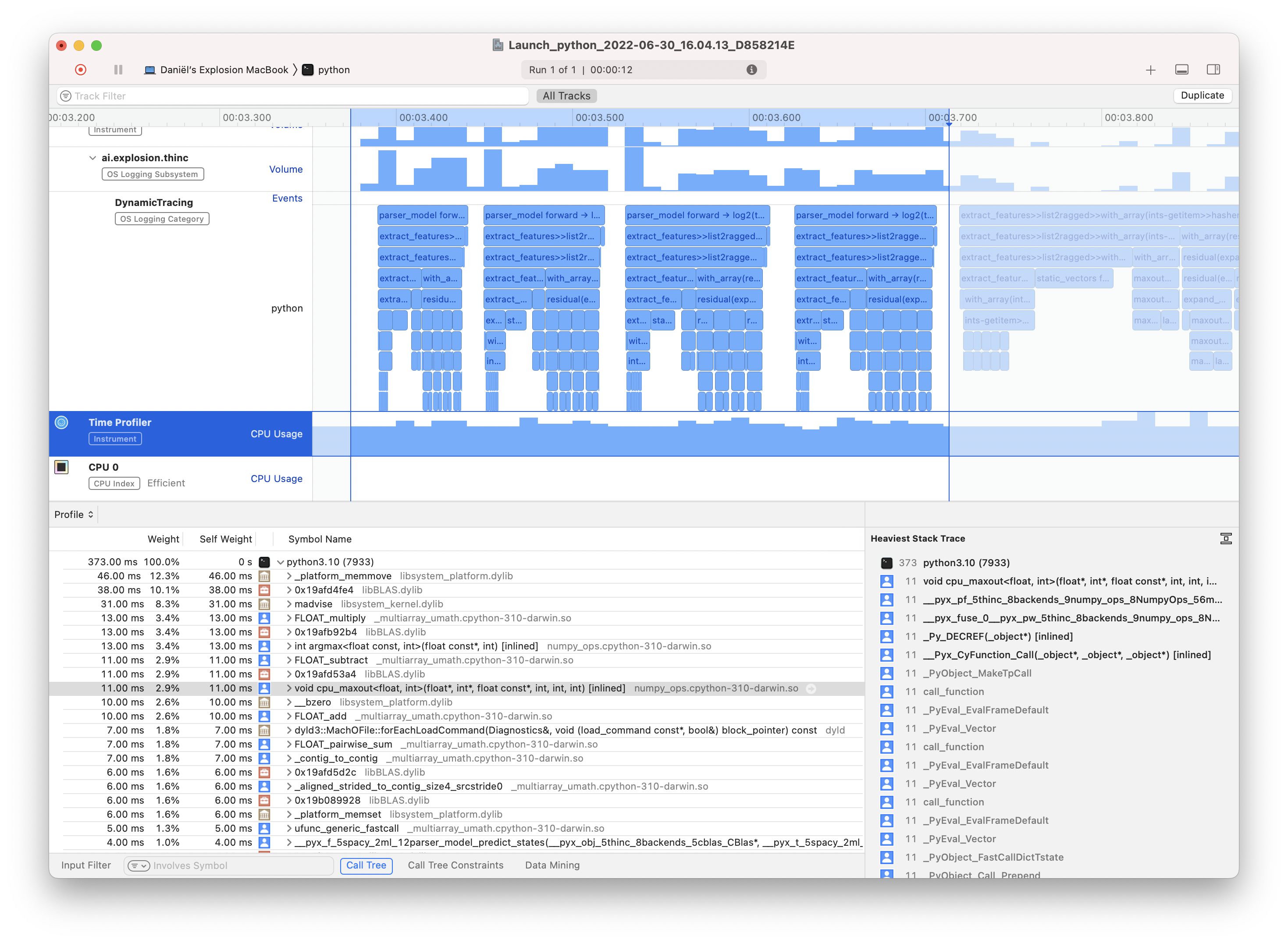 Example of Thinc layers that are visualized in the Instruments.app timeline: