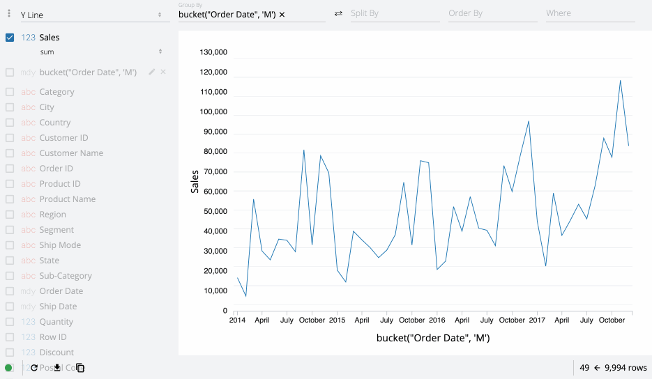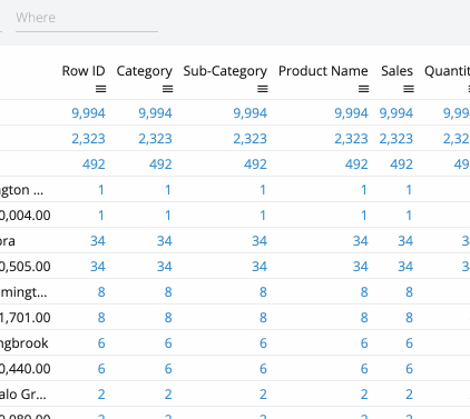 Group By,Sort, etc) can now accept drop columns in any position instead of just the end of the list.Filter auto-complete now shows all completions from the dataset (instead of just the top 10), has an
