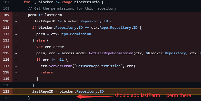 BlockingByDependenciesNotPermitted, which causes thenot permitted messagenot to show. The correct one isBlockingorBlockedBylastRepoIDandlastPermto avoid duplicate checks, but forgets to assign thelastPermat the end of the code block. So I rewrote this to avoid this trick.blocksslice, which is even more confusing. So I rewrote this too.