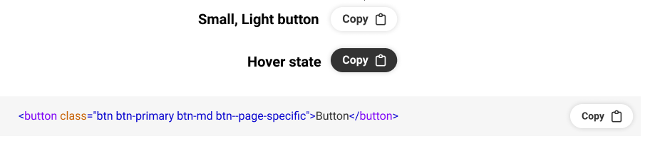 Create new classes to implement the design for the copy button. Afterwards, add the copy button information in the design system page as necessary.