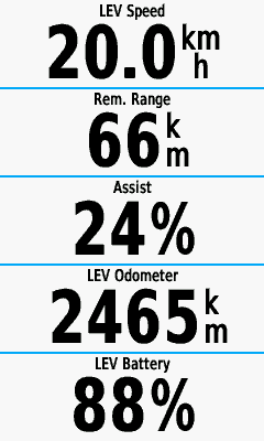 - Displaying Specialized assist modes (OFF, ECO, TRAIL, TURBO)