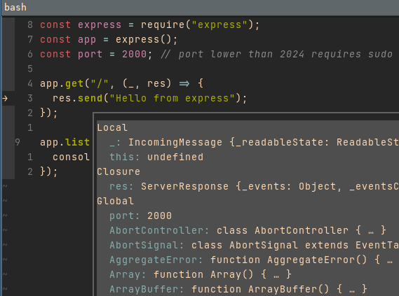 res: ServerResponse { ... goes under Local
