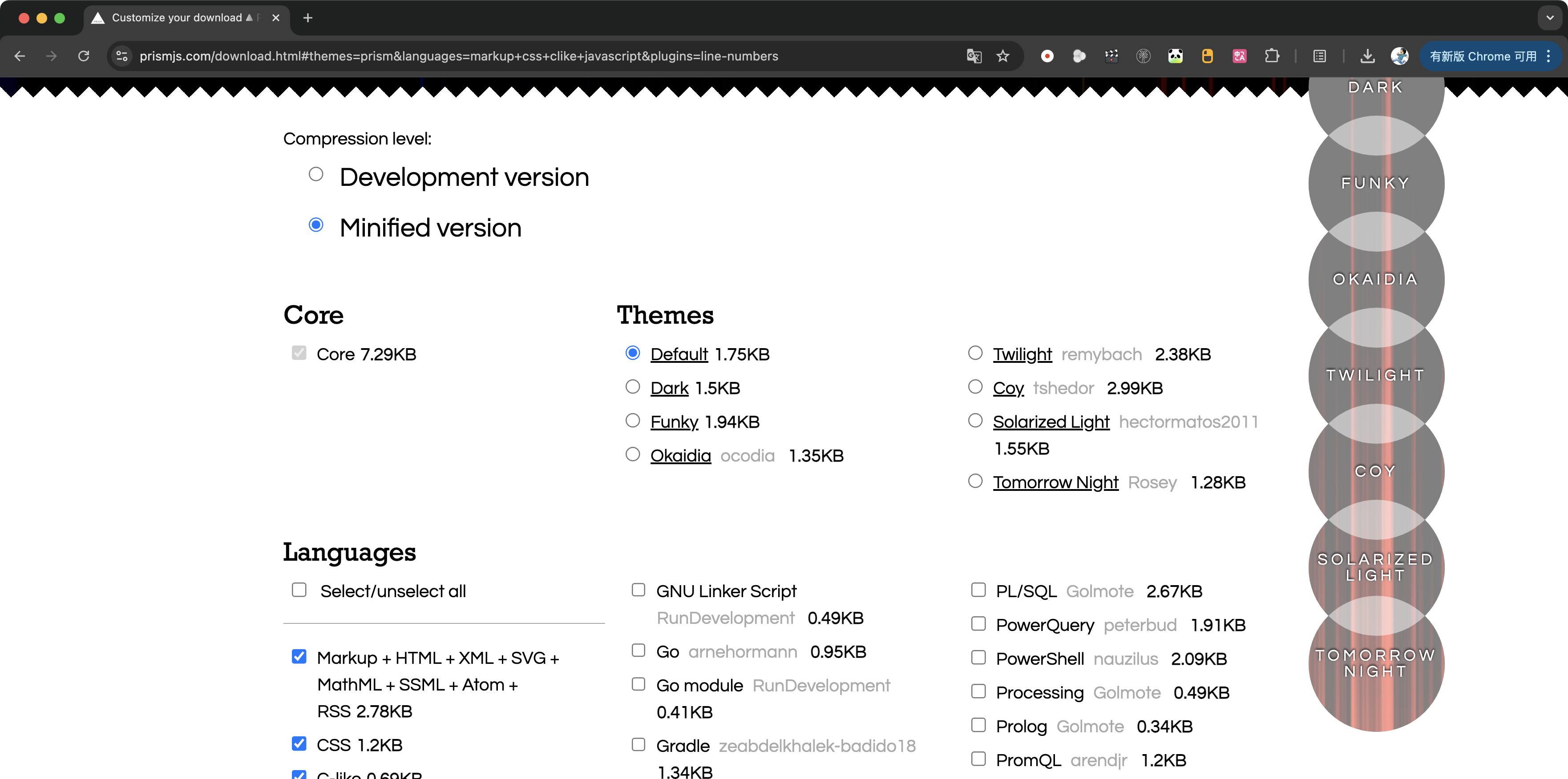 https://prismjs.com/download.html#themes=prism&languages=markup+css+clike+javascript&plugins=line-numbers