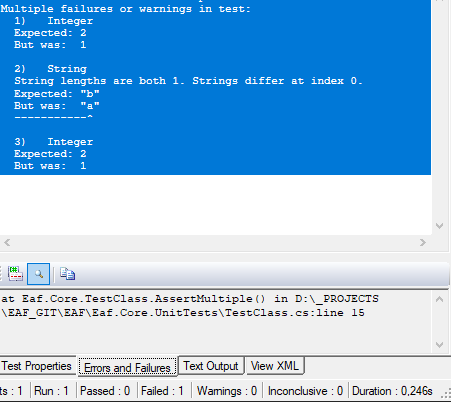 private void ValidateInteger() => Assert.That(1, Is.EqualTo(2), "Integer");