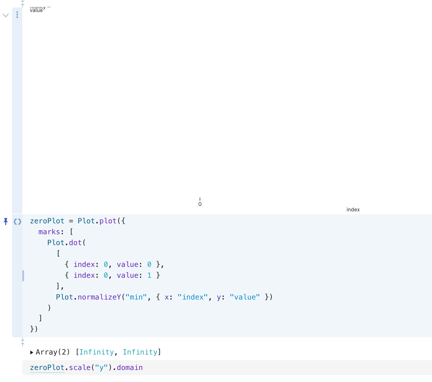 | The Plot.normalizeX and Plot.normalizeY transforms normalize series values relative to the given basis. For example, if the series values are [*y₀*, *y₁*, *y₂*, …] and the *first* basis is used, the mapped series values would be [*y₀* / *y₀*, *y₁* / *y₀*, *y₂* / *y₀*, …] as in an index chart. The **basis** option specifies how to normalize the series values. The following basis methods are supported: | ||