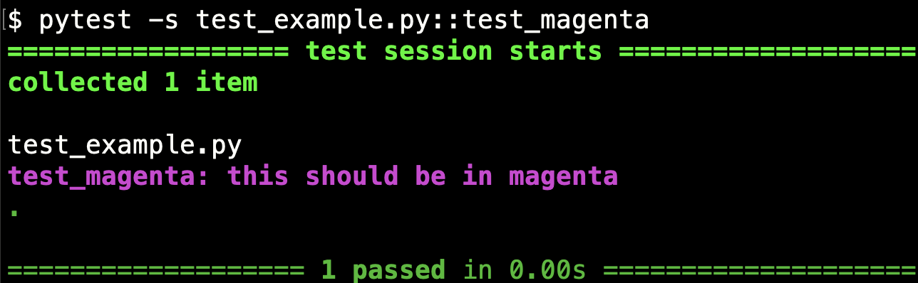 cyan("this should be cyan")- Conference talk page : Sharing is Caring - Sharing pytest Fixtures