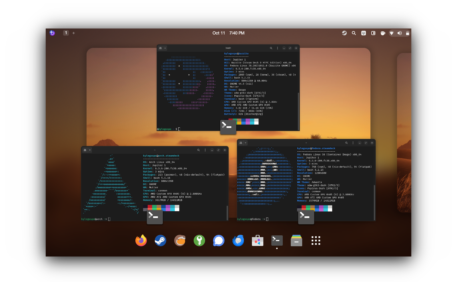 - Steam Deck Homebrew - For choosing to support distributions other than SteamOS despite the extra work, and a special thanks to PartyWumpus for getting Decky Loader working with SELinux for us.
