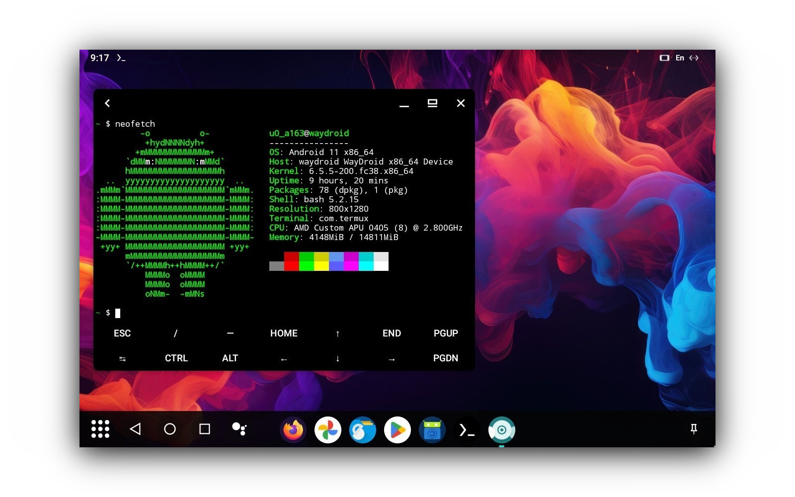 - Waydroid preinstalled for running Android apps. Set it up with this quick guide.