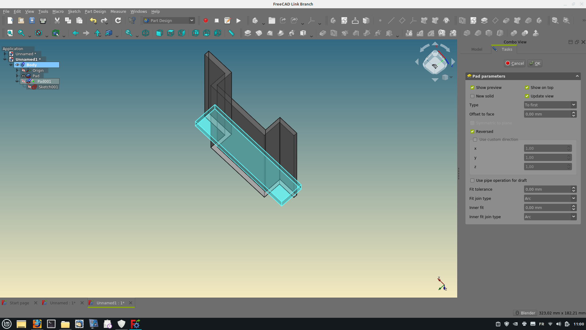 I got "infinite" pad when the type of limit is set to "to first" (selected limit face is circular) or "to first".