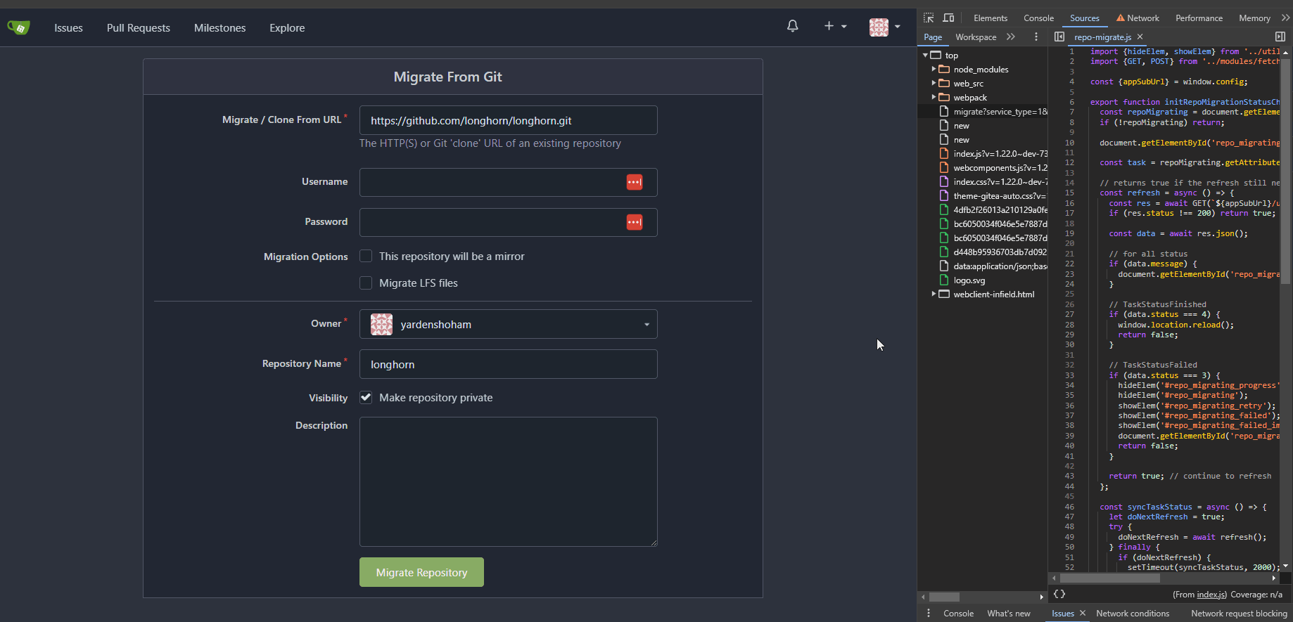 7+ const repoMigrating = document . getElementById ( ' repo_migrating') ;
