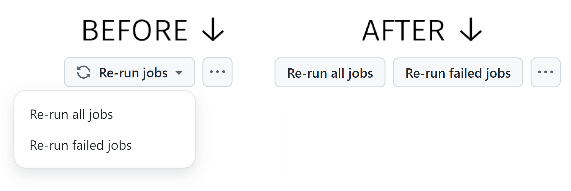 - Unwraps the "Re-run jobs" dropdown into individual buttons and adds a keyboard shortcut to re-run failed jobs: r f.