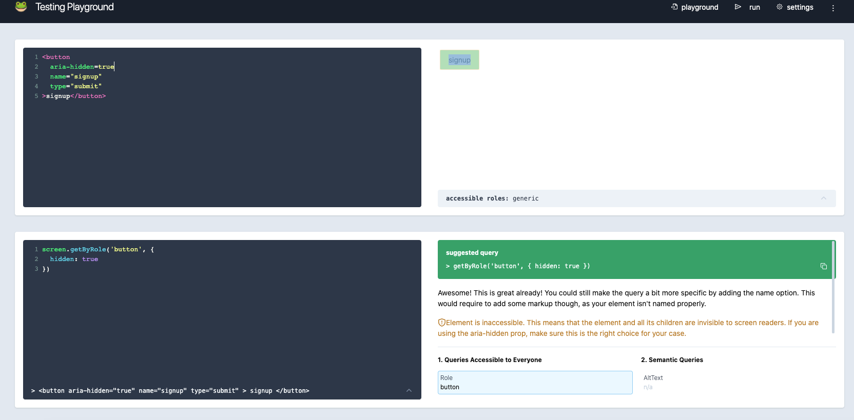 ResultSuggestioncomponent (look here)Why: Because on @testing-library/dom we return from