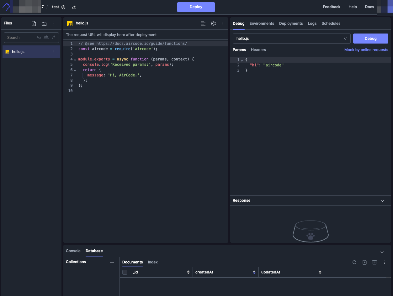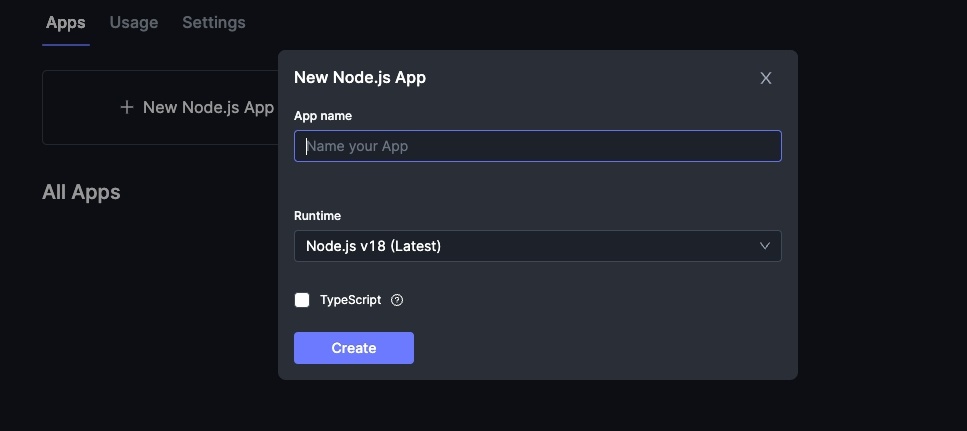 登录 AirCode ,创建一个新的 Node.js 的项目,项目名可以根据你的需要填写